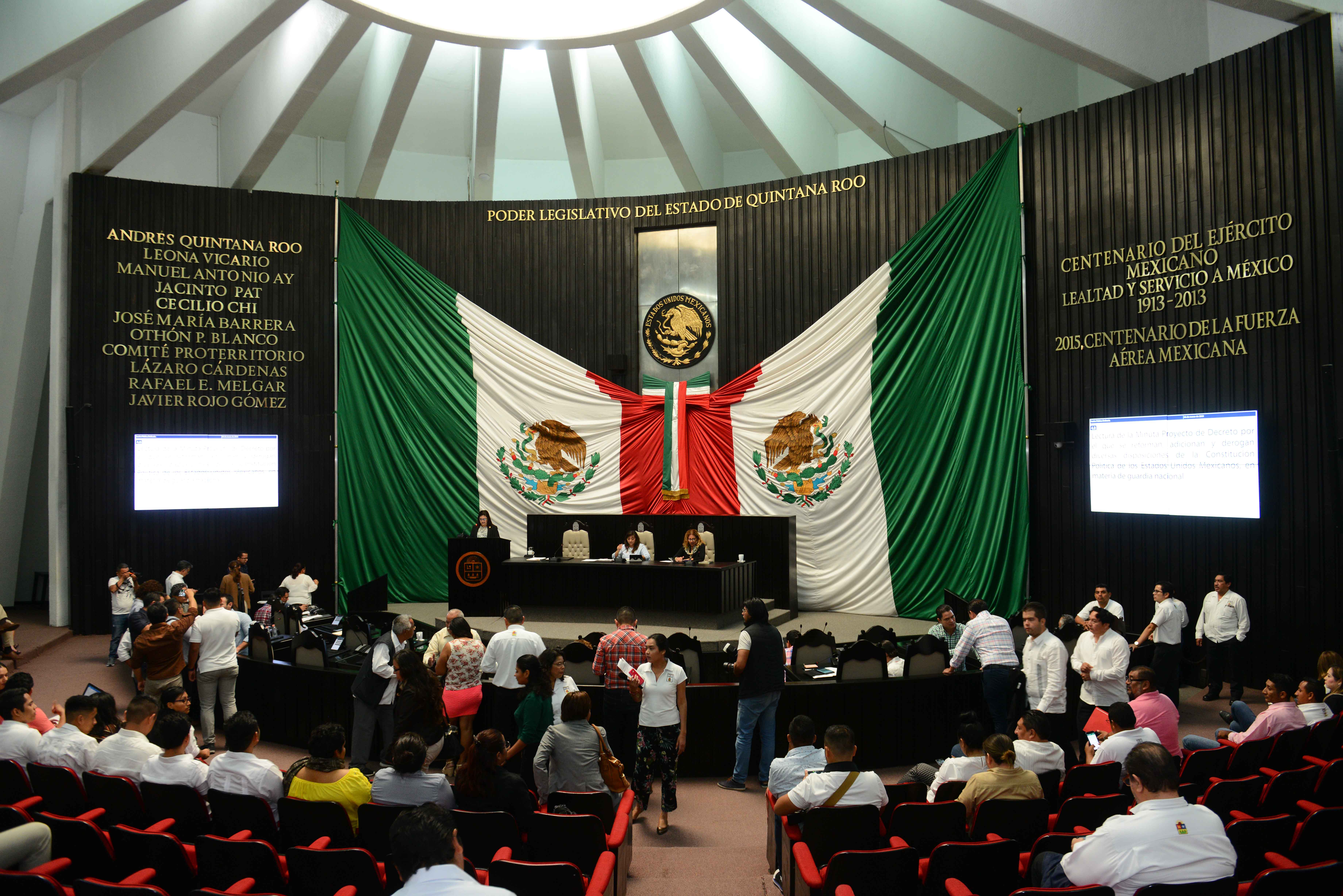 Chetumal, Quintana Roo. – Con el voto a favor de todas las fracciones parlamentarias representadas en la XV Legislatura, el Congreso del Estado de Quintana Roo avaló la minuta que contiene las reformas a la Constitución Política de los Estados Unidos Mexicanos, mediante la cual se creará la Guardia Nacional que, gracias al trabajo de la sociedad civil organizada, de expertos y servidores públicos, lograron modificar la propuesta original para dotarla de un mando civil con pleno respeto a los derechos humanos.