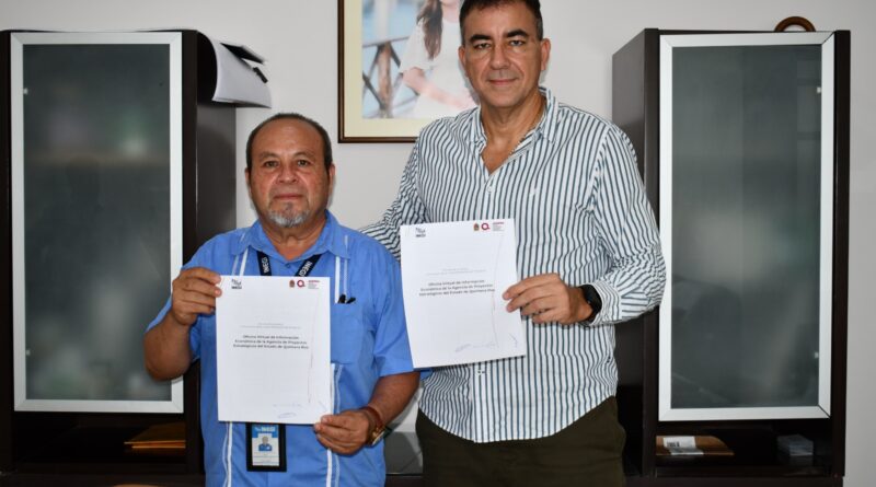 Chetumal.- La Agencia de Proyectos Estratégicos del Estado de Quintana Roo (Agepro) y el Instituto Nacional de Estadística y Geografía (Inegi) firmaron un acuerdo de colaboración para la implementación de una Oficina Virtual de Información Económica (OVIE).