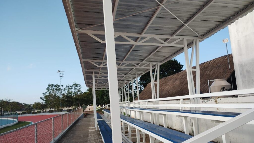 Amador Gutiérrrez Guigui, director de Deportes, mencionó que se techaron y mejoraron las gradas de la pista, como parte de las acciones de rehabilitación seccionada, integral, de la unidad, entre las que se encuentra el Poliforum, la cancha de Fronton, la de fútbol rápido, el alumbrado de los campos de fútbol, entre otros.