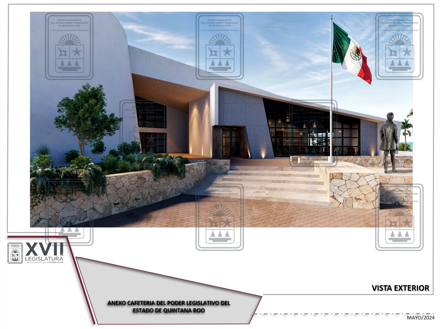 La diputada informó que el Anexo Cafetería se construirá en un área contigua a la Sala de Comisiones “Constituyentes de 1974”, para lo cual se reubicará el mural “De Territorio a Estado: Quintana Roo” en una zona contigua a la entrada que da al estacionamiento.