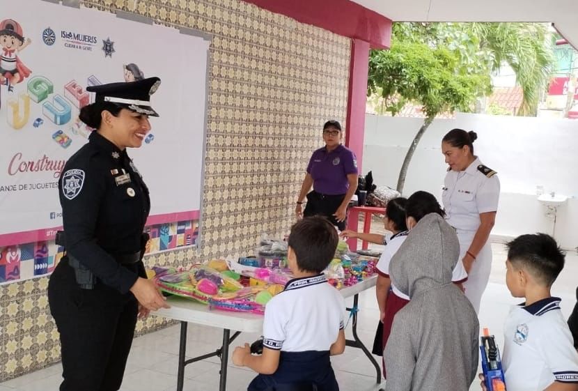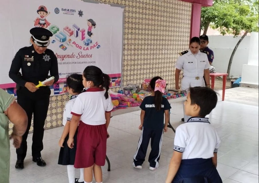 Isla Mujeres, Quintana Roo, 13 de diciembre de 2023.- Con el firme compromiso de fomentar una cultura de paz en Isla Mujeres, el Gobierno Municipal que encabeza la alcaldesa Atenea Gómez Ricalde, a través de la Dirección General de Seguridad Pública y Tránsito, puso en marcha la campaña de canje de juguetes bélicos “Juguetes por la Paz”, en la primaria Andrés Quintana Roo de la Zona Insular.