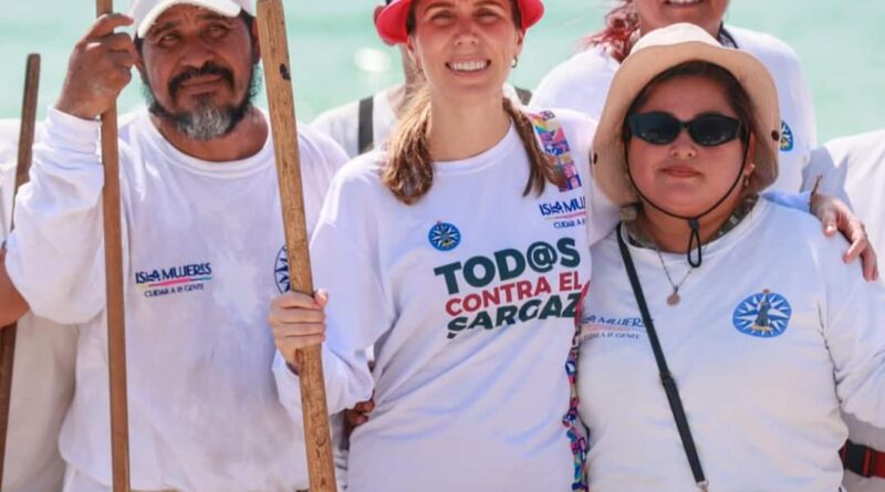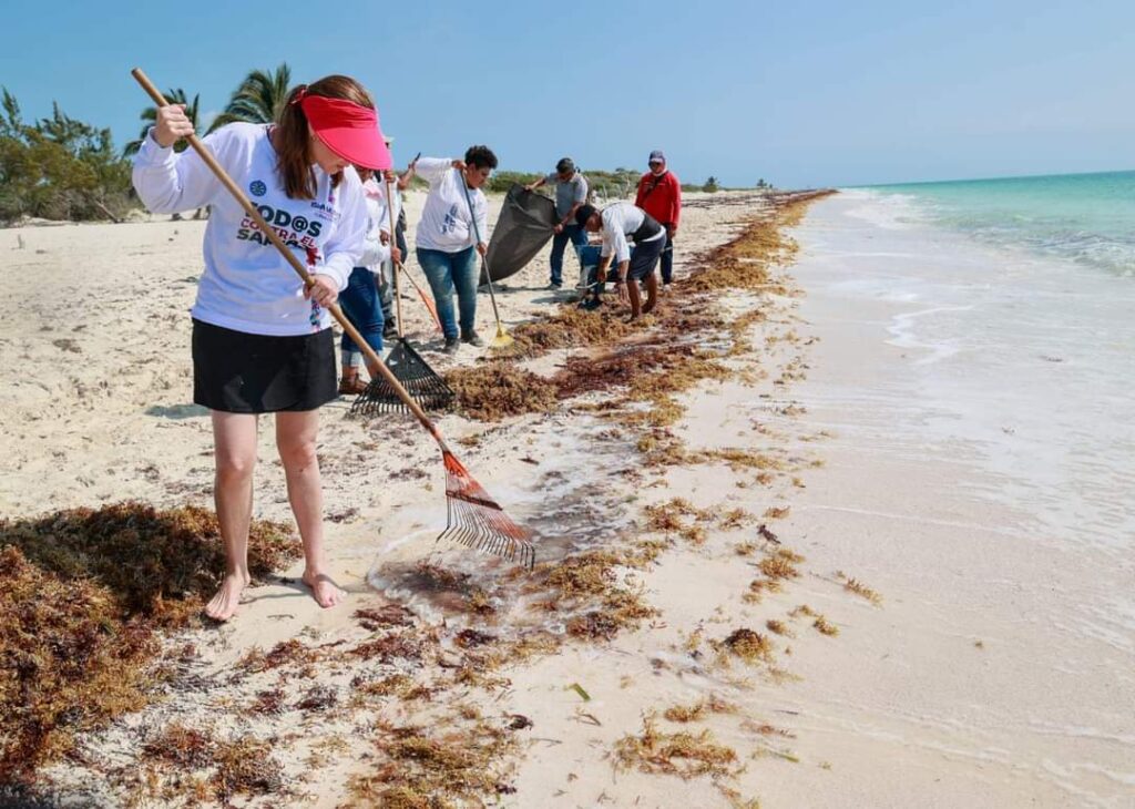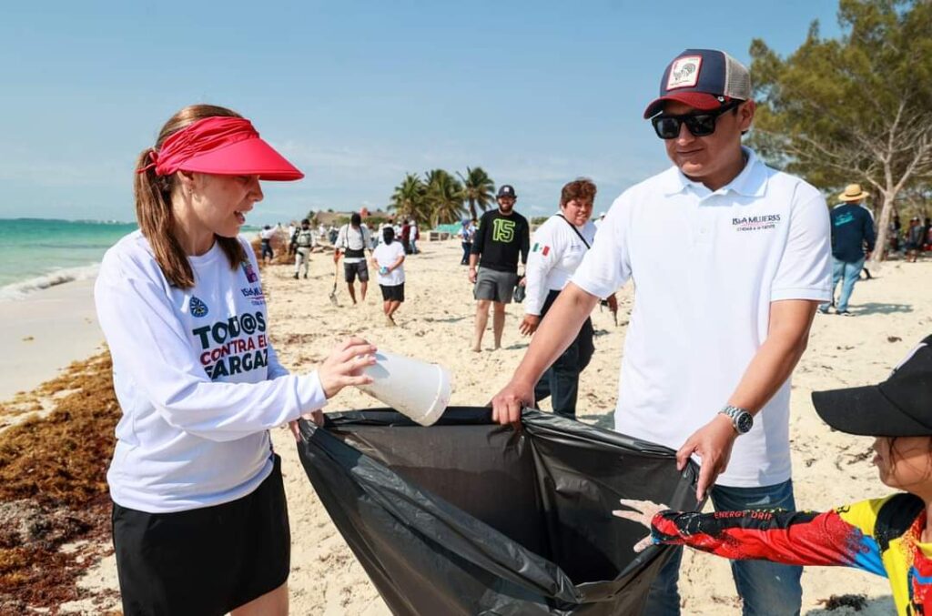 Ahí, la alcaldesa en coordinación y haciendo equipo participó de manera activa en la limpieza y recolección de sargazo y basura al recalcar que uno de sus objetivos es fomentar entornos saludables para que las familias isleñas tengan una mejor calidad de vida, además, de que se inculcará el respeto a la Madre Tierra.