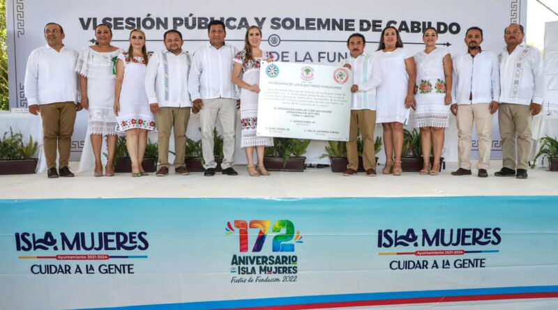 Isla Mujeres, Quintana Roo, 28 de agosto de 2022.- Con motivo del 85 aniversario de la Fundación del Ejido Isla Mujeres, la presidenta municipal de Isla Mujeres, Atenea Gómez Ricalde, encabezó la 6ª. Sesión Pública y Solemne del Honorable Ayuntamiento para el periodo 2021-2024 en el domo Hugo Ravell de la Zona Continental, siendo esta la primera vez que se realiza una sesión solemne en Ciudad Mujeres.