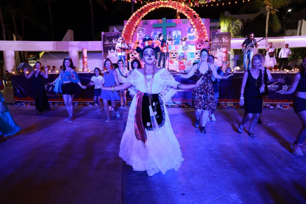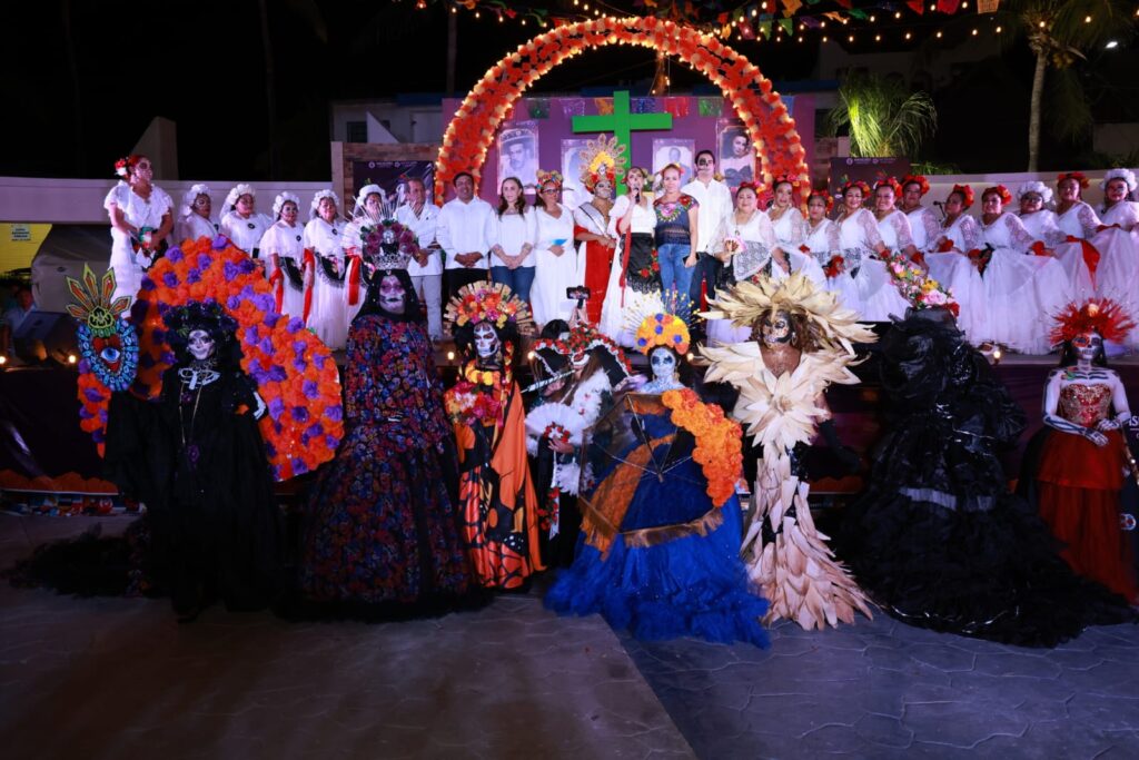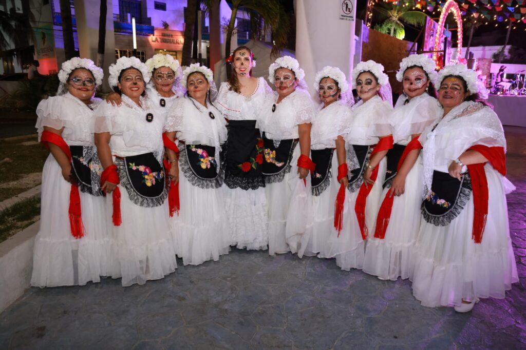 Los asistentes disfrutaron de la presentación del grupo Dueto de Danzón, de la catrina bailadora Ale Castañón Cascabel, del grupo de danza “Tumben Kiin”, “Tumben Ha”, “Danza y Pasión Isleña” y Curripiti, posterior a la presentación de los grupos de danza se realizó el concurso de Catrinas Vivientes, obteniendo el primer lugar y un premio de diez mil pesos, Jesús Tec con“El Altar”, el segundo fue para Margaret Montgomery con la “Catrina del Maíz” y el tercero para La Quetrina con “Mariposa Monarca”.