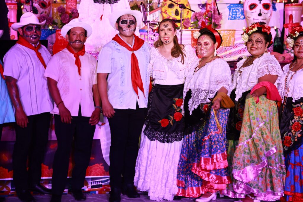 Isla Mujeres, Quintana Roo, 30 de octubre de 2023.- Como parte del amplio programa de actividades de la tercera edición del Festival “Luz y Vida, entre Vivos y Muertos”, la presidenta municipal, Atenea Gómez Ricalde, encabezó “La Noche de Todos los Santos” con sabor a Veracruz, en la Explanada Municipal de la zona insular del municipio.
