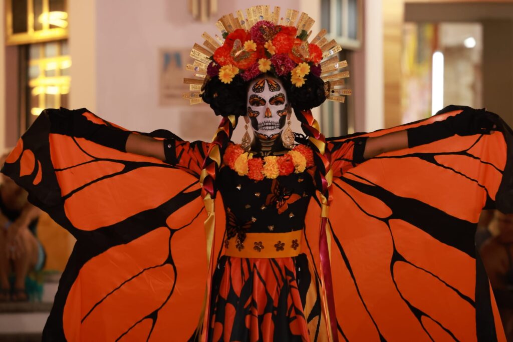 Atenea Gómez encabezó la “Noche de Todos los Santos” en la Explanada Municipal prevaleciendo la magia y colorido de las Catrinas Vivientes