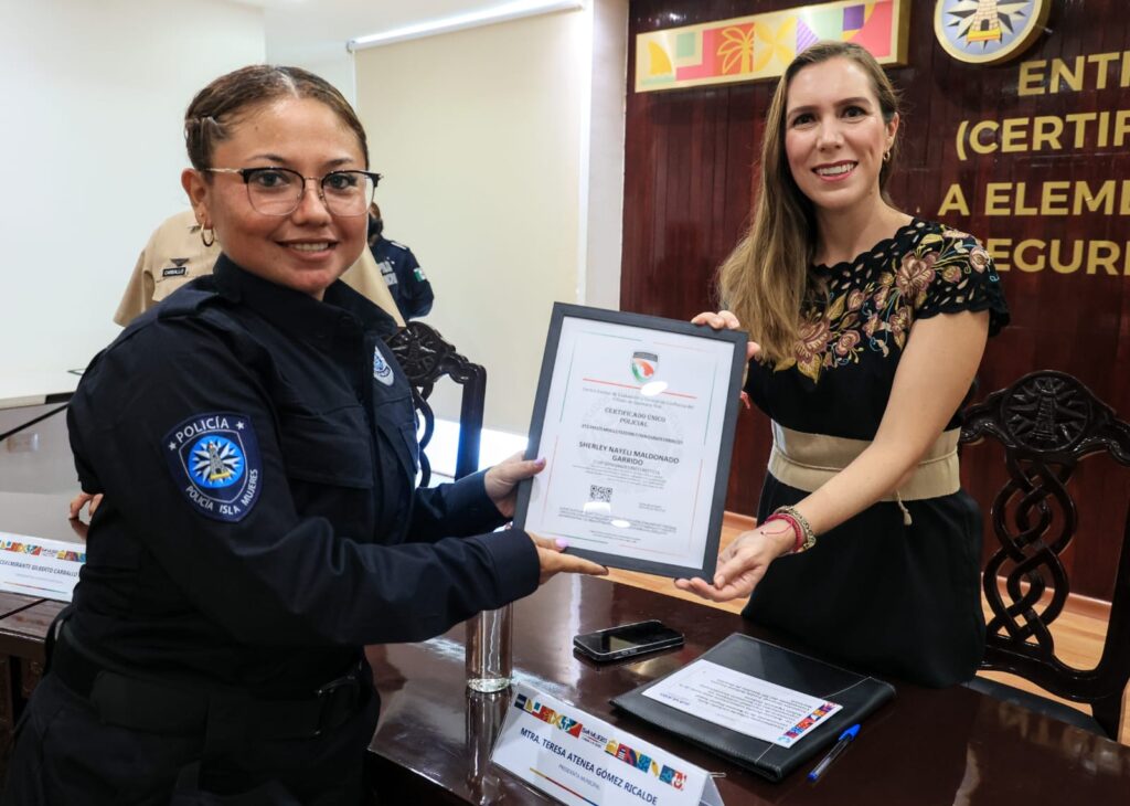 “Me da mucho gusto ver que nuestros policías continúan capacitándose y cumpliendo con sus certificaciones, eso me motiva a seguir proporcionándoles las herramientas para que puedan desempeñar de la mejor manera su labor”, señaló la alcaldesa.