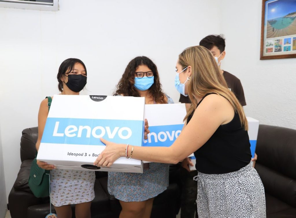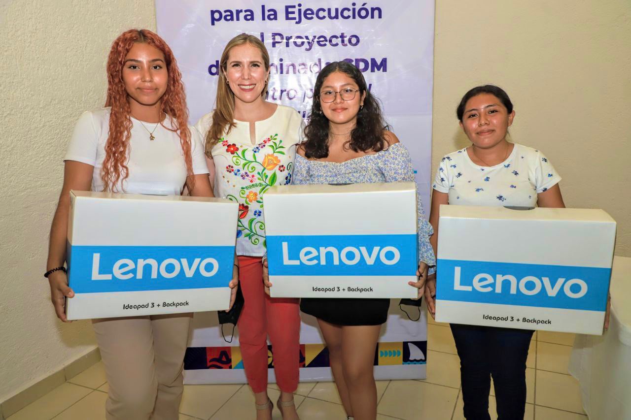 También resultaron beneficiados con computadoras Wendy Montserrat Cazares San Juan, quien sobresalió por su excelencia académica al obtener un promedio de 10; Diana Isabel Góngora Fernández con 9.7 y Geraldine Montserrat Hernández Pech con 9.8, quienes obtuvieron dichos promedios entre más de 600 alumnos y alumnas de la Generación 2019-2022 del Colegio de Bachilleres de Ciudad Mujeres que se ubica en la zona continental de la ínsula.