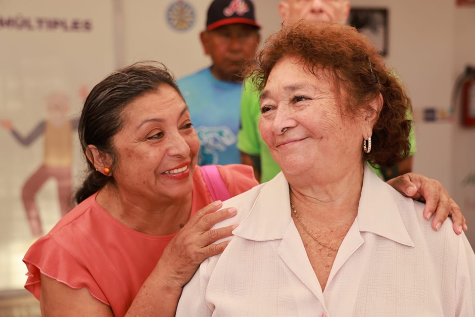 Atenea Gómez entrega kits a las abuelitas y abuelitos que participarán en los Juegos Estatales Deportivos y Culturales