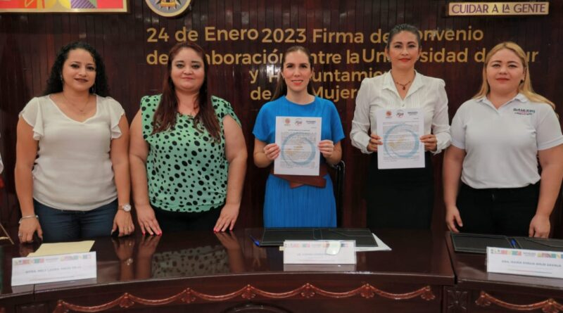 Isla Mujeres, Quintana Roo, 24 de enero de 2023.-Con la finalidad de fortalecer la educación e impulsar el desarrollo de las familias de los colaboradores del H. Ayuntamiento de Isla Mujeres, para que puedan acceder a mejores oportunidades como parte del Nuevo Acuerdo por el Bienestar y Desarrollo que impulsa la Gobernadora del Estado, Mara Lezama Espinosa, la Presidente Municipal, Atenea Gómez Ricalde, firmó un convenio de colaboración con la Universidad del Sur en la Sala de Cabildo.