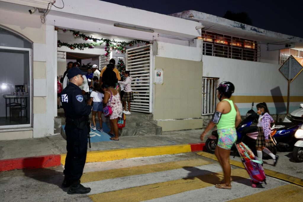 Isla Mujeres, Quintana Roo, 24 de enero de 2023.- Cuidar la seguridad de las y los alumnos es una prioridad para la presidente municipal Atenea Gómez Ricalde, por ello, hoy acudió a la primaria “Julio Sauri Espinosa” para supervisar la seguridad durante la entrada a clases.