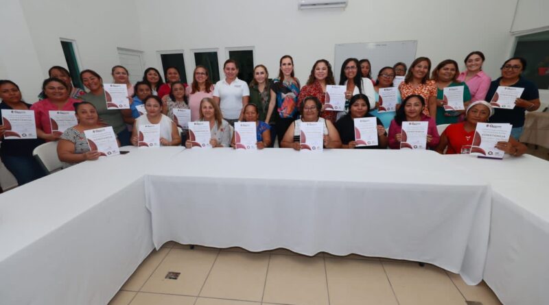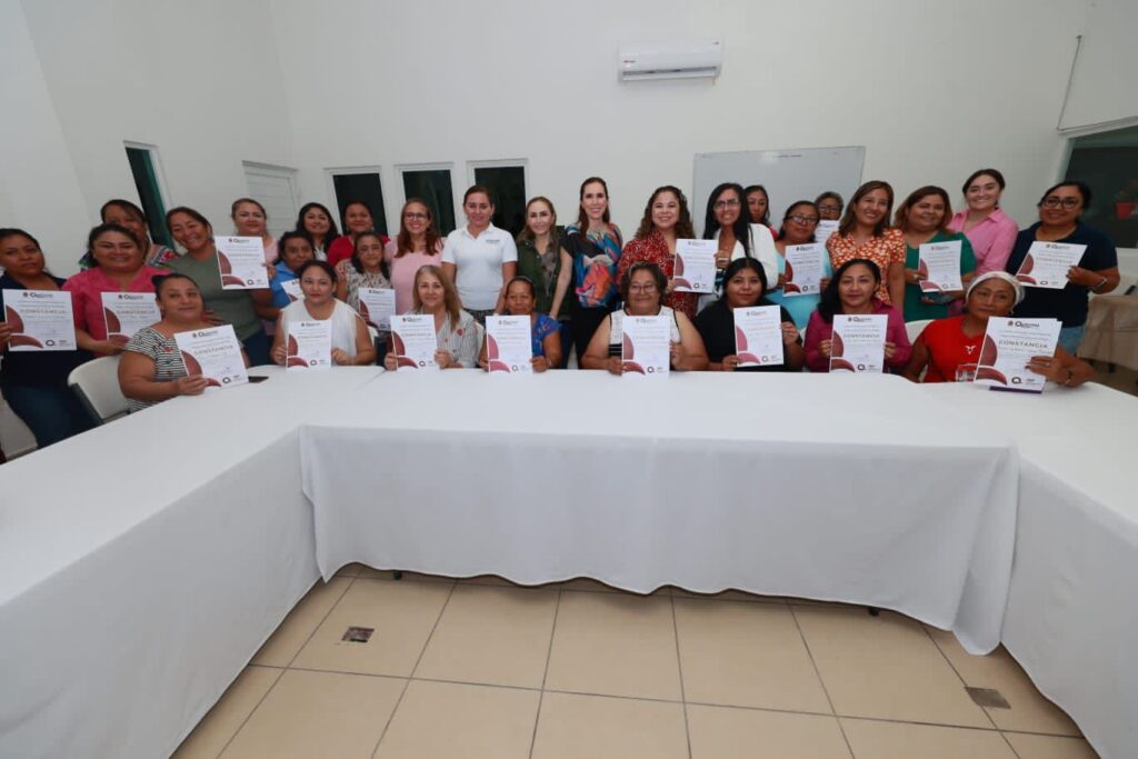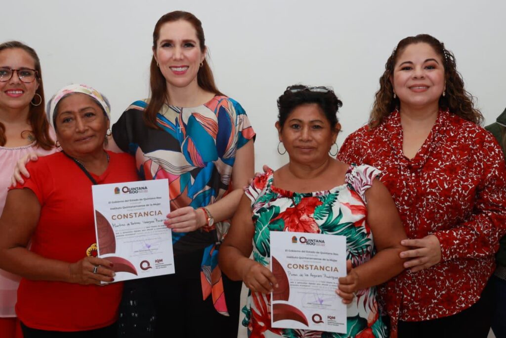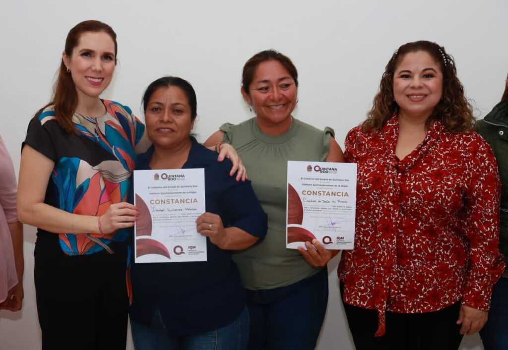 “Seguiré impulsando a las mujeres y motivándolas a superarse, brindándoles las herramientas necesarias que permitan su empoderamiento y auto-economía”, refirió la alcaldesa, al entregar junto con la directora del Instituto Quintanarroense de la Mujer (IQM), María Hadad Castillo las constancias a quienes participaron en el taller.