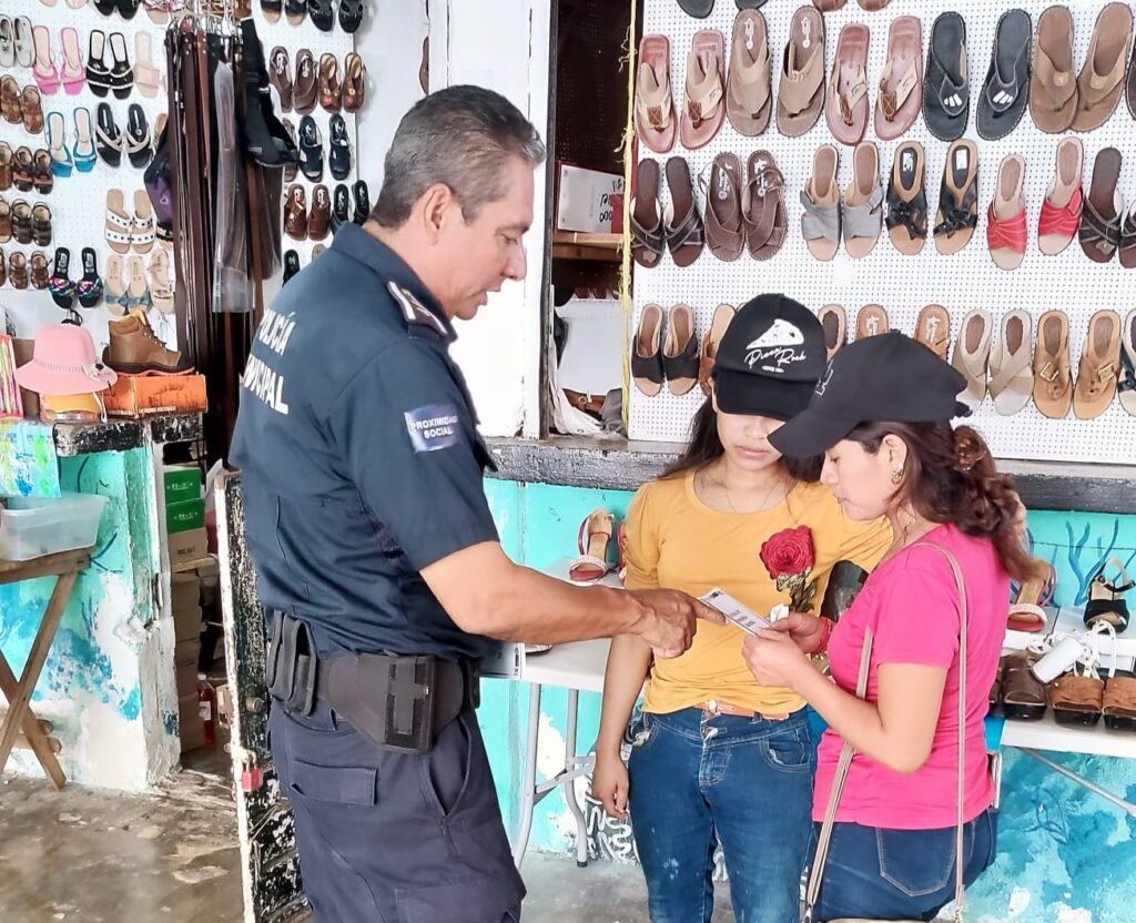La mencionada dirección visitó los comercios en el mercado de la colonia El Cañotal, en donde se dio a conocer el trabajo que realiza el Grupo Especializado en Violencia Familiar y de Género (GEAVIG), recalcando la importancia de que las mujeres denuncien en caso de vivir algún tipo de violencia, por ello, se entregaron trípticos informativos sobre como enfrentar este tipo de situaciones. También se informó sobre cómo identificar riesgos y realizar reportes de forma segura y confidencial.