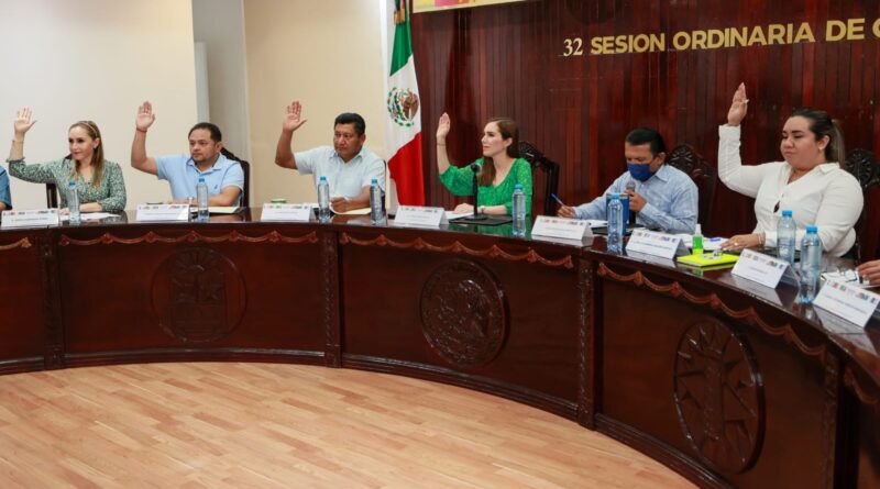 Durante la 32a. Sesión Ordinaria de Cabildo estuvieron presentes el secretario general del Ayuntamiento, Hugo Iván Sánchez Montalvo e integrantes del Cabildo.