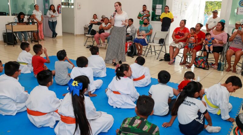 Isla Mujeres, Quintana Roo, 18 de abril de 2023.- Generar prosperidad y bienestar para todas las niñas, niños y jóvenes de la Zona Continental del municipio a través del deporte es uno de los principales compromisos de la alcaldesa, Atenea Gómez Ricalde, por ello, asistió a la demostración de Taekwondo de la Escuelita Municipal del Deporte.