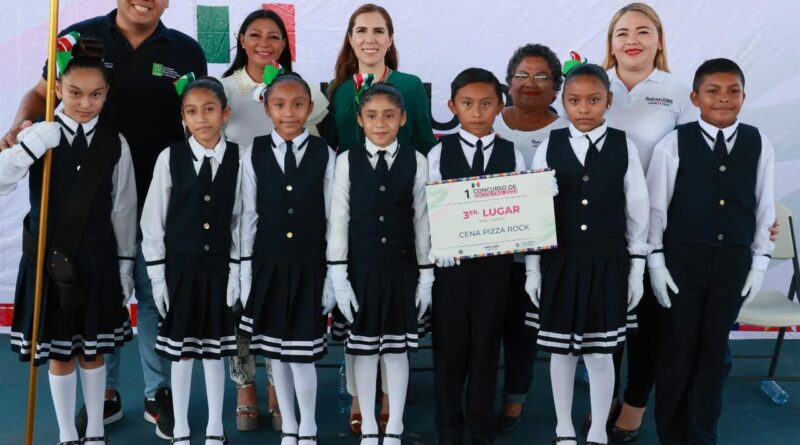 Isla Mujeres, Quintana Roo, 24 de febrero de 2023. – En el marco de la conmemoración del Día de la Bandera, la presidenta municipal, Atenea Gómez Ricalde, presidió el primer Concurso de Escoltas en el domo Bicentenario de la colonia El Cañotal en la zona insular.