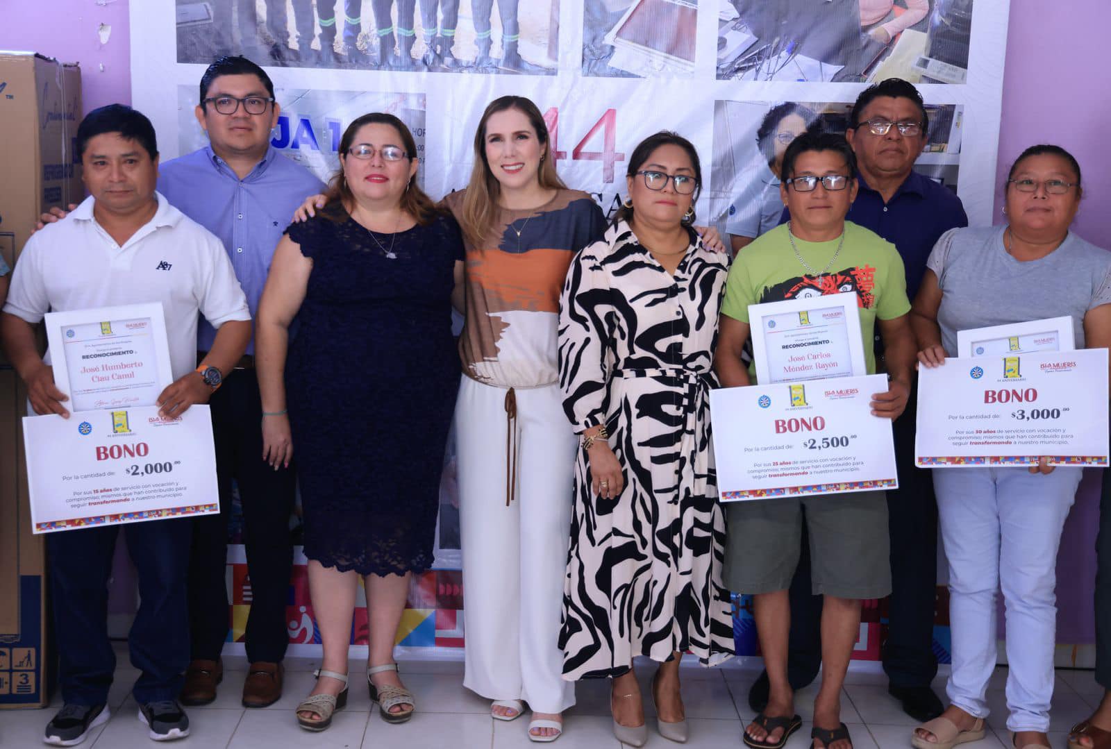 Los trabajadores que recibieron reconocimiento son Lorenzo Antonio Collí Pool, con 10 años de servicio; José Humberto Ciau Canul, con 15 años; Marcos Aarón Estrella Pat, con 20 años de servicio; Dulce María Barbudo Loría y José Carlos Méndez Rayón, con 25 años de servicio; y José Exaltación Canul May, Samuel Maldonado Guzmán, Bernardino Tun Paz, Guadalupe Selene Magaña Pat y María Teresa Contreras Rodríguez, con 30 años de servicio.