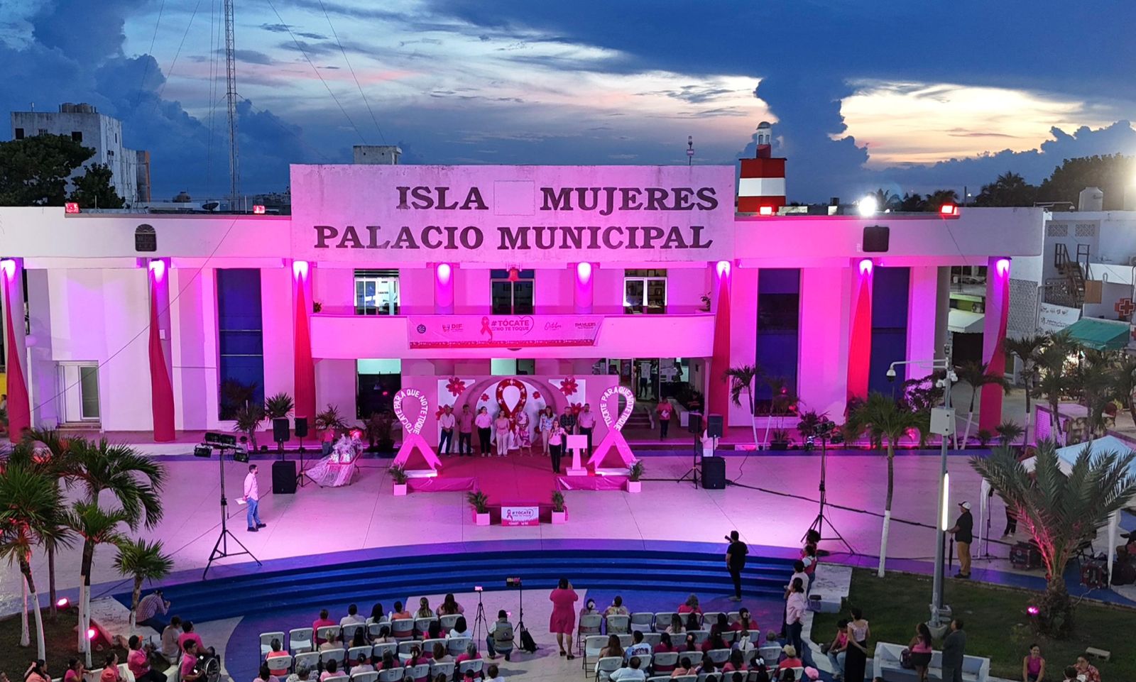La Presidenta Municipal, acompañada de mujeres sobrevivientes del cáncer de mama y de familias isleñas, encabezó la ceremonia que recordó la importancia de la detección temprana con el mensaje “Tócate, para que no te toque”.