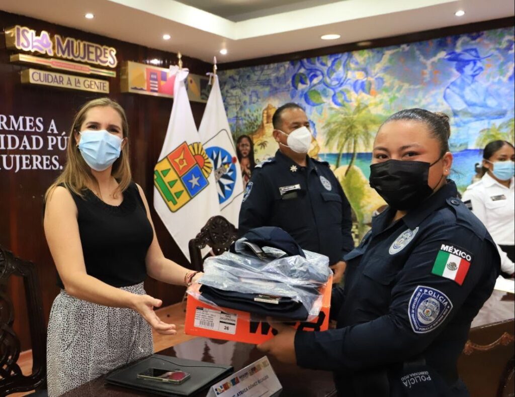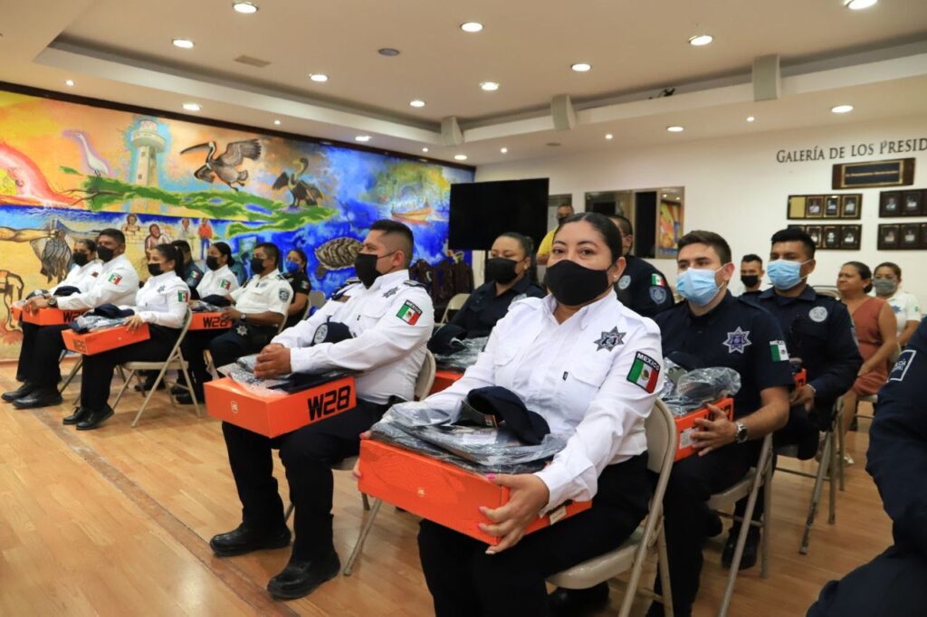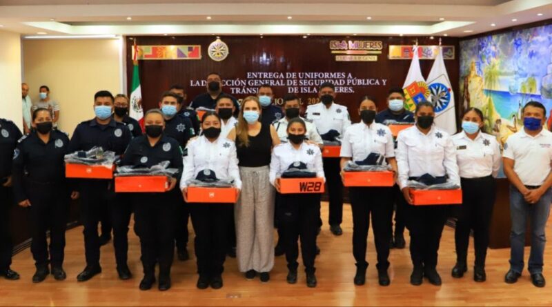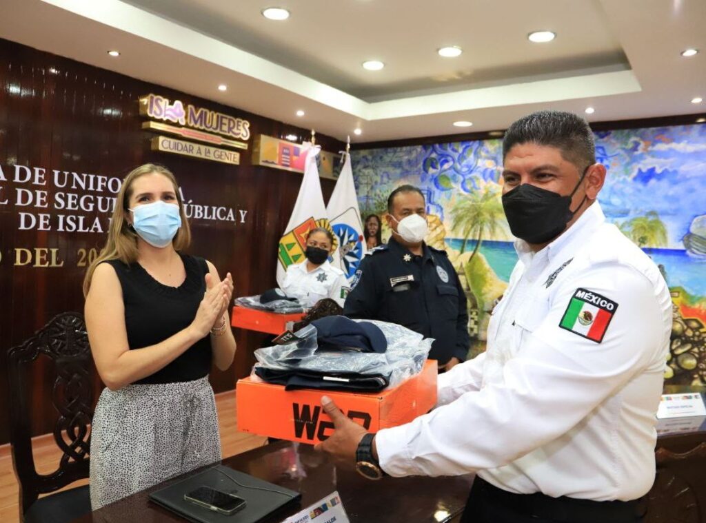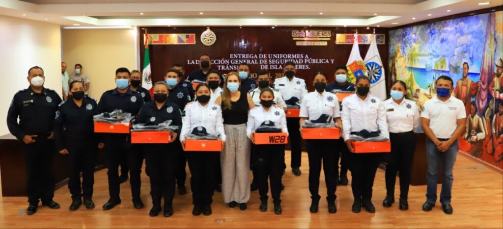 Con la finalidad de mejorar y dignificar las condiciones laborales de quienes brindan seguridad a las familias isleñas, la presidente municipal, Atenea Gómez Ricalde, entregó uniformes nuevos a los elementos de la Dirección General de Seguridad Pública y Tránsito Municipal.