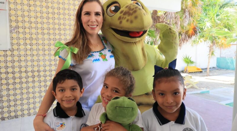 Isla Mujeres es un habitat natural de tortugas, es por ello que la alcaldesa habló con los niños sobre el cuidado de estos quelonios y la preservación de sus nidos, evitando tirar basura ni plásticos en las playas, así como no dejar popotes.