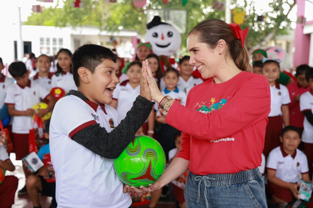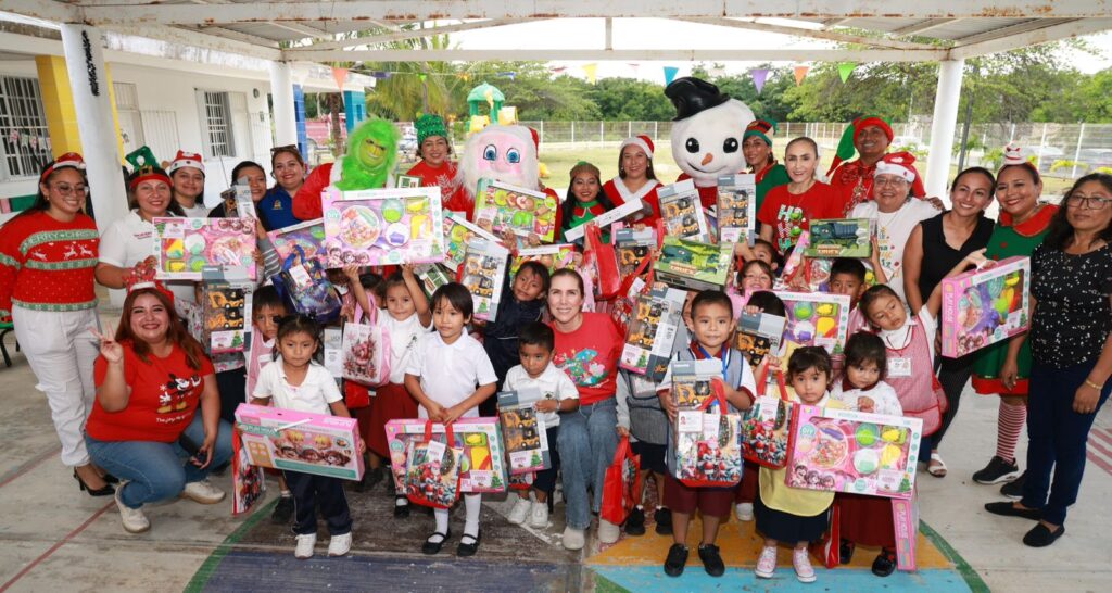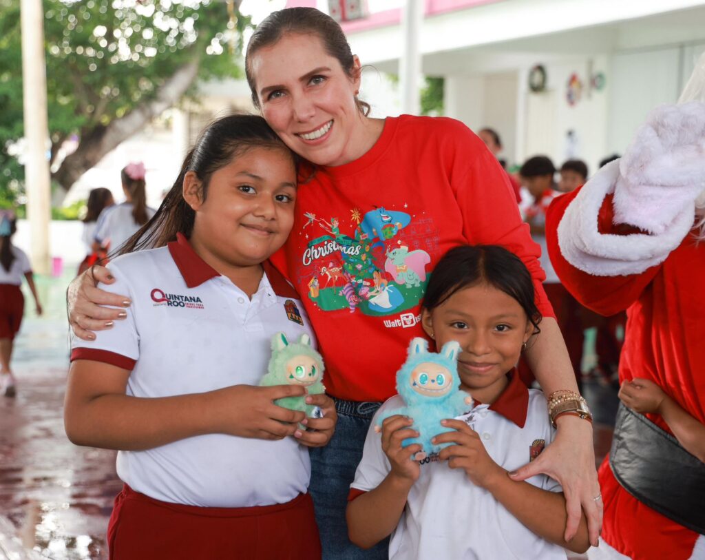 Isla Mujeres, Quintana Roo, 9 de diciembre de 2025.- Con el objetivo de llevar alegría a las niñas y niños en esta temporada decembrina, la Presidenta Municipal Atenea Gómez Ricalde, inició en la Zona Continental con el Programa Navidad en tu Escuela.