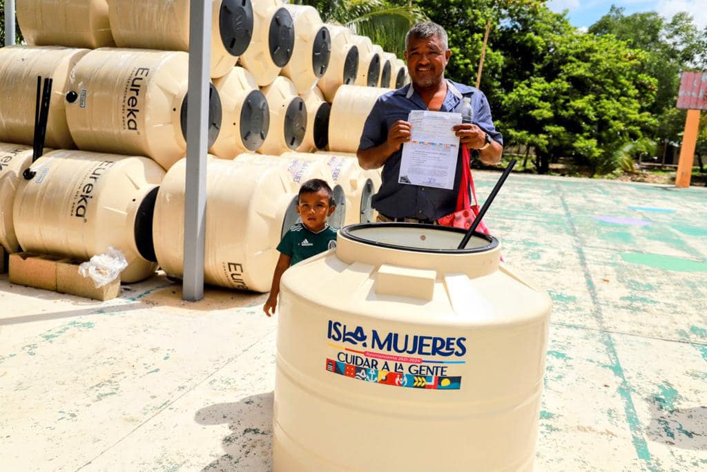 Juan Carlos Burgos, Director de Programas Sociales de Isla Mujeres, precisó que se entregaron 106 tinacos, de los cuales 85 fueron destinados a Francisco May y 21 a la Zona Agrícola, así como también fueron distribuidos 46 apoyos alimentarios a beneficiarias del programa “Isleña de Corazón”.