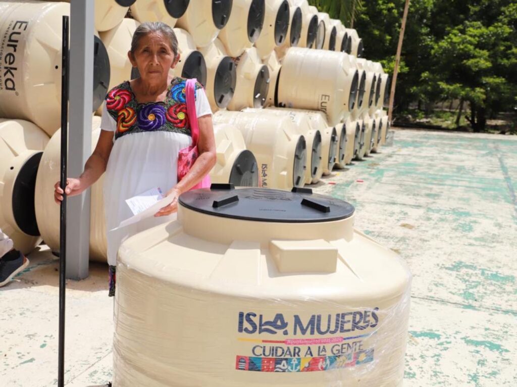 Isla Mujeres, Quintana Roo, a 11 de septiembre. – Con el objetivo de mejorar la calidad de vida de las familias isleñas, a través de programas sociales, el Gobierno Municipal, encabezado por Atenea Gómez Ricalde, realizó la entrega de apoyos de tinacos del programa “Agua para Ti” e “Isleña de Corazón” para beneficiarios de las comunidades de la Zona Agrícola y Francisco May.
