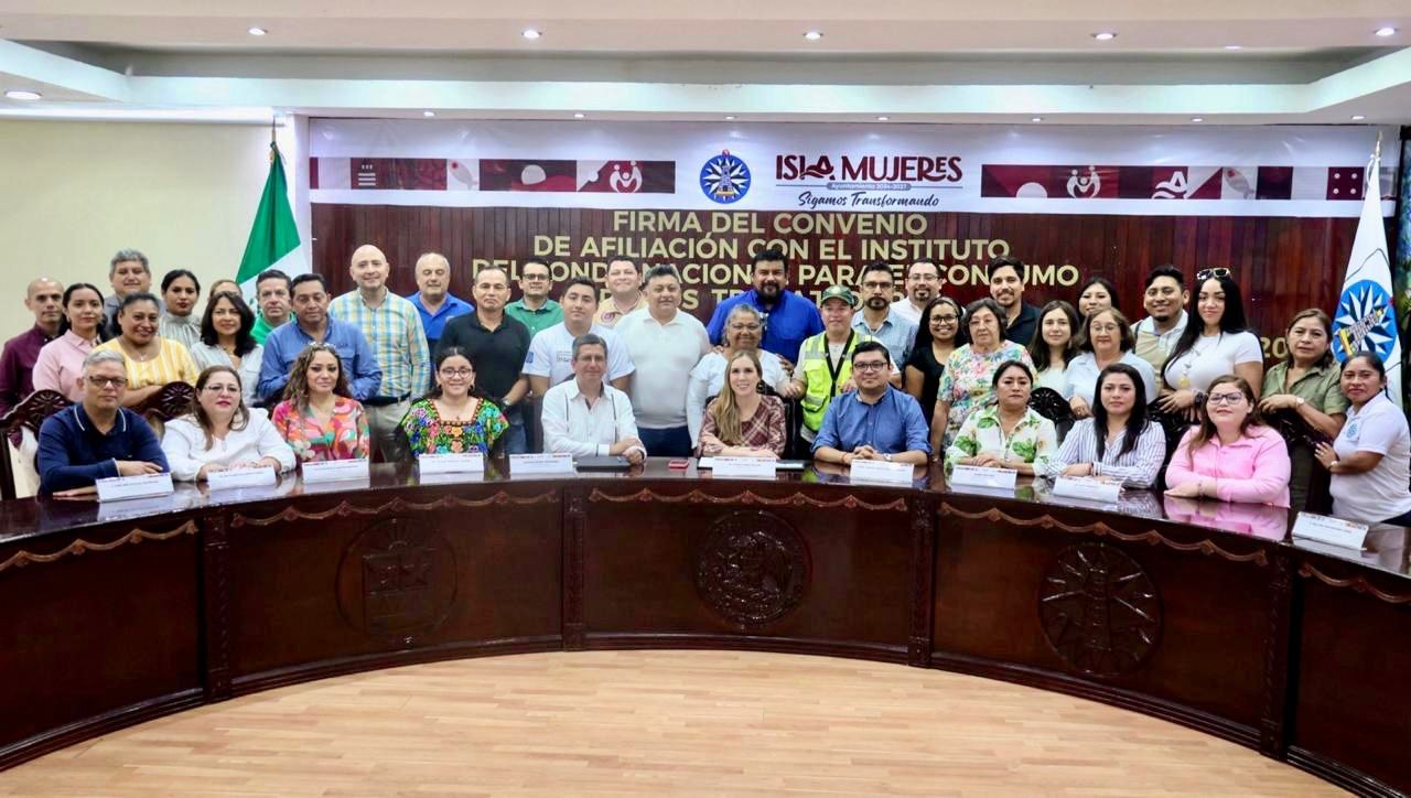Isla Mujeres, Quintana Roo a 20 de diciembre de 2024.-El Ayuntamiento de Isla Mujeres, que encabeza la alcaldesa Atenea Gómez Ricalde, firmó un Convenio de Afiliación con el Instituto del Fondo Nacional para el Consumo de los Trabajadores (Fonacot), con el cual se hace justicia social, recuperando beneficios para los trabajadores que habían perdido hace más de cinco años.