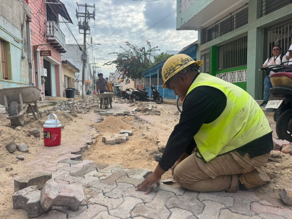 Atenea Gómez Ricalde supervisa el avance del soterramiento de la red eléctrica en el Centro de Isla Mujeres