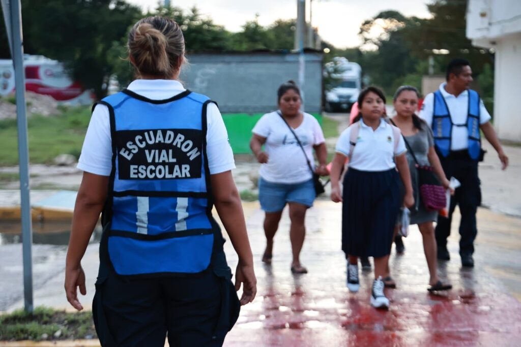 Agregó que, desde el ciclo escolar pasado, se puso en marcha el programa “Escuadrón Escolar”, con el cual se han involucrado padres de familia y maestros, para reforzar la seguridad vial y agilizar el tránsito, porque como lo marca el Nuevo Acuerdo por el Bienestar y Desarrollo de Quintana Roo, todas y todos contribuyen a la construcción de un mejor Isla Mujeres.