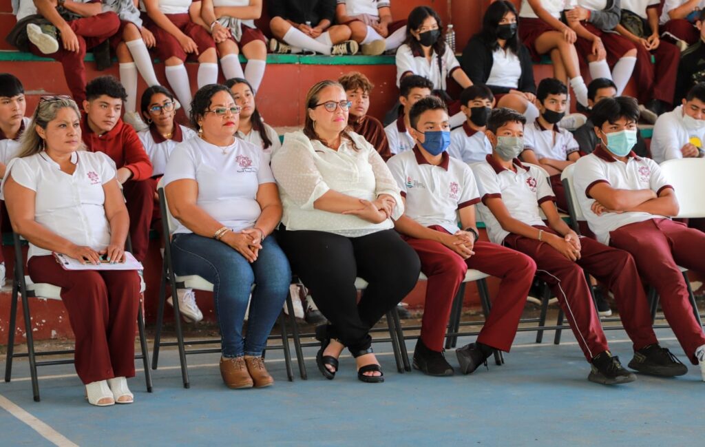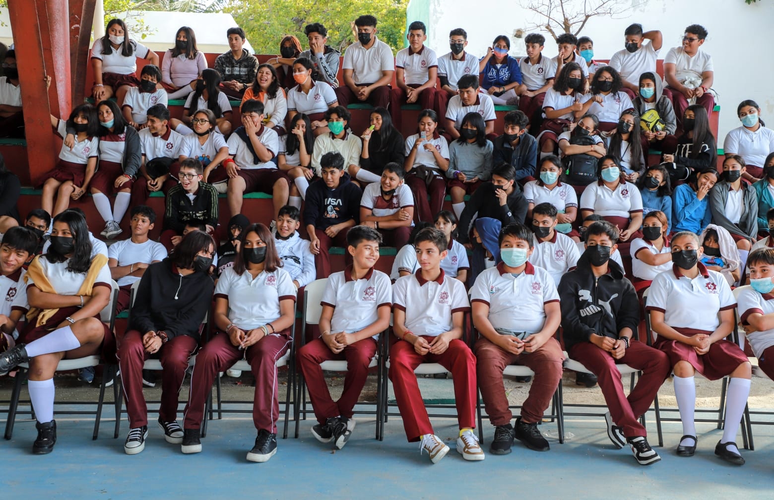 Durante el monólogo acompañaron a la presidenta del Sistema DIF de Isla Mujeres, directivos y docentes y estudiantes de la secundaria.