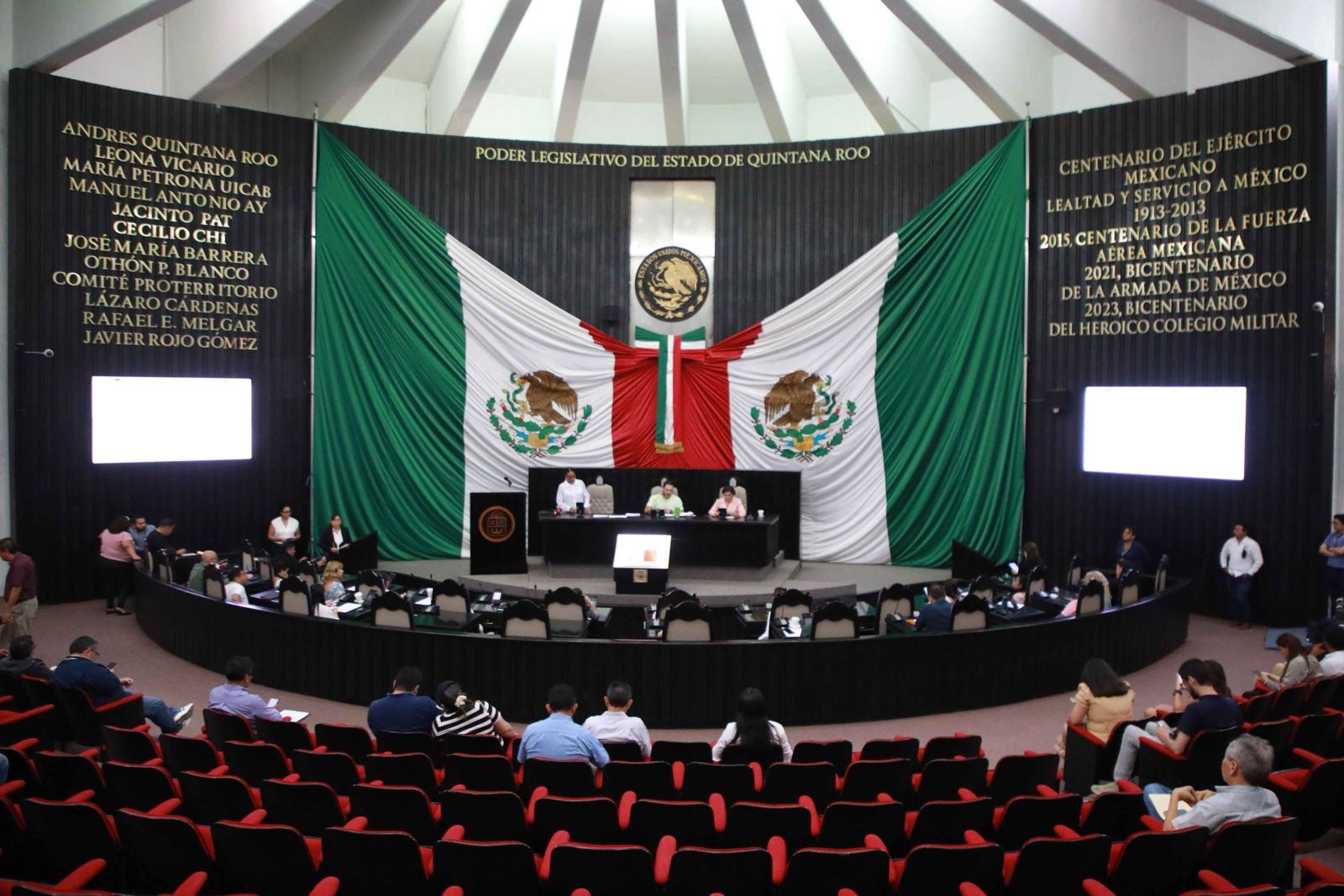 En la sesión se aprobó una adición al artículo 94 Bis y al anexo 10.20 al Presupuesto de Egresos del Gobierno del Estado de Quintana Roo para autorizar erogaciones plurianuales de hasta 4 mil 32 millones de pesos para la construcción de domos u otros tipos de infraestructuras análogas en todos los planteles de educación pública básica, media superior y superior del Estado, destinados a la práctica de actividades deportivas, culturales, cívicas o recreativas, para el periodo restante de la actual administración.