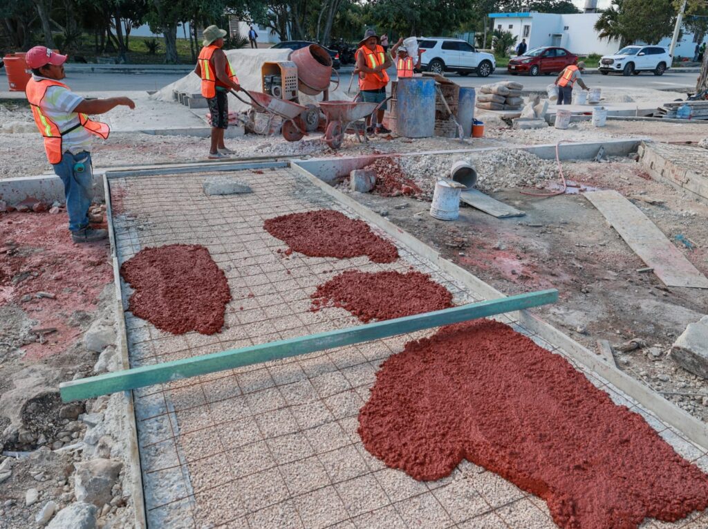 Avanza obra de la Plaza Ejidatarios en la Zona Continental de Isla Mujeres