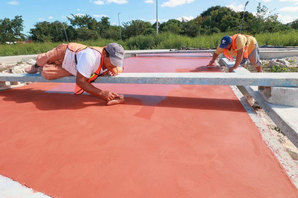 Isla Mujeres, Quintana Roo, 23 de enero de 2023.-El Gobierno que encabeza la alcaldesa Atenea Gómez Ricalde, continúa cumpliendo compromisos con la gente de la Zona Continental y haciendo obras que les generen un mayor bienestar y desarrollo, como es el caso de la Plaza Ejidatarios de Ciudad Mujeres, la cual registra un avance del 40 por ciento.