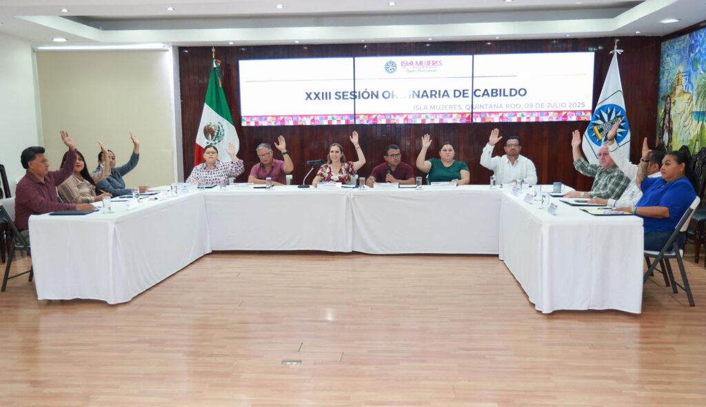 Isla Mujeres, Quintana Roo a 9 de julio de 2025.-El Cabildo de Isla Mujeres aprobó por unanimidad las reglas de operación del exitoso programa “Transformando la Educación: Mi Computadora” y del nuevo programa social “Láminas de Zinc”, con la finalidad de beneficiar a las juventudes y familias isleñas que más lo necesitan.