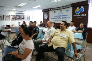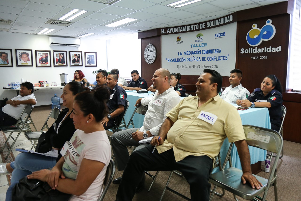 El Gobierno de Solidaridad, en coordinación con el Centro Estatal de Prevención Social del Delito y Participación Ciudadana en Quintana Roo, impartió el curso-taller “Mediación Comunitaria”, con el fin de brindar a los servidores públicos que están en contacto directo con los ciudadanos, las herramientas necesarias para la resolución de conflictos de forma positiva.