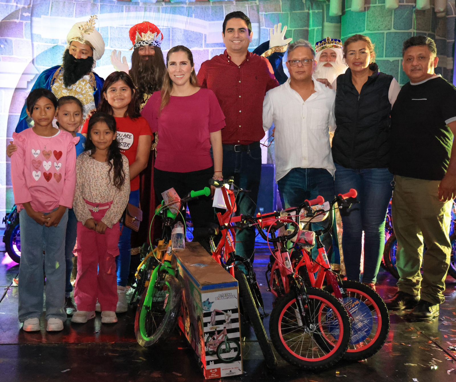 El festival incluyó hermosos juguetes para todas las niñas y niños, así como la rifa de regalos, entre los que destacaron carros y bicicletas, un show musical infantil lleno de diversión, y la presencia de botargas de personajes icónicos que encantaron a los asistentes. Además, se compartió la tradicional Rosca de Reyes, símbolo de unión y celebración.