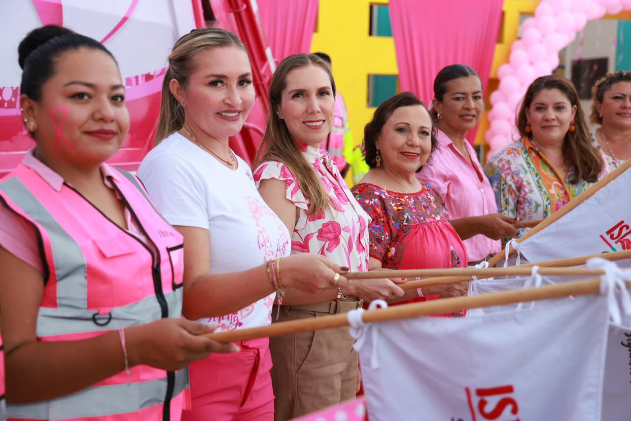 El evento inició con el banderazo de salida del Camioncito Rosa de servicios públicos, seguido de una charla médica sobre la importancia de la autoexploración y la detección oportuna.