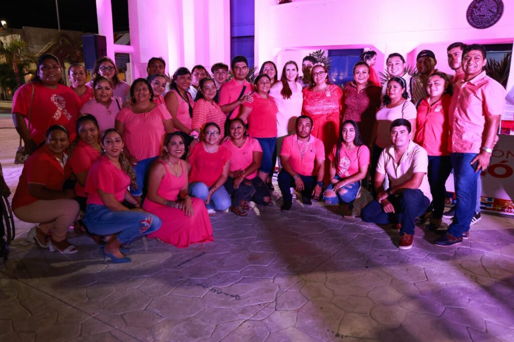Con el Encendido de Luces Rosa en la explanada municipal de la ínsula, arrancó la campaña contra el Cáncer de Mama “Cuidándote con el Corazón”, en Isla Mujeres.