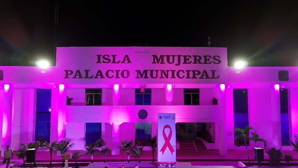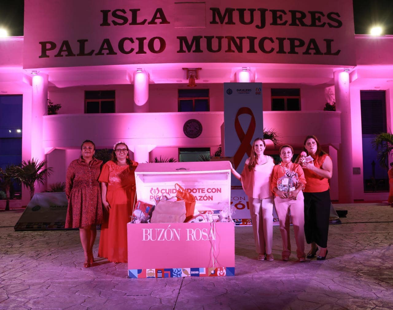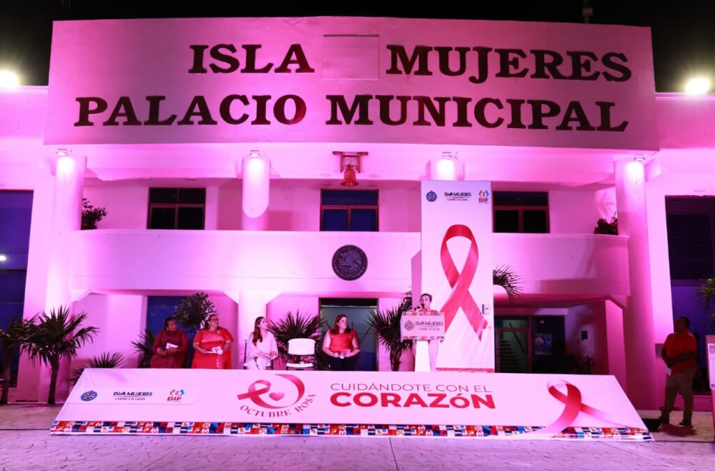 Con el Encendido de Luces Rosa en la explanada municipal de la ínsula, arrancó la campaña contra el Cáncer de Mama "Cuidándote con el Corazón", en Isla Mujeres.