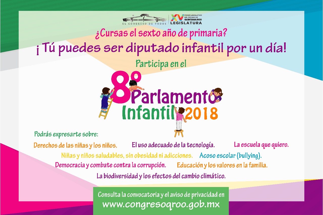 el Congreso del Estado invita a participar en el OCTAVO PARLAMENTO INFANTIL DEL ESTADO DE QUINTANA ROO 2018,