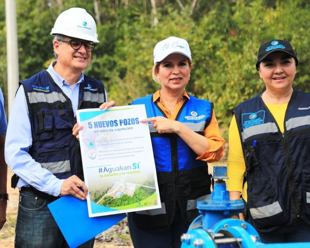 Playa del Carmen, Solidaridad, 15 de febrero del 2023.- Con la finalidad de lograr que, de una vez por todas, el suministro de agua potable sea más eficiente para todas las familias solidarenses, la presidenta Lili Campos supervisó el avance que presentan los cinco pozos de captación en la zona ejidal que realiza la empresa Aguakan. Ahí recalcó el compromiso de renovar el servicio de distribución con calidad en beneficio de ciudadanos y visitantes.