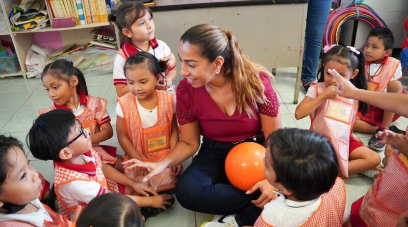 Asimismo, Marybel Villegas, aprovechó para saludar a los pequeñitos del Jardín de Niños Yohelil Pal, a cargo de la directora Lizbeth Canul, donde entregó pelotas a los chiquitines, quienes con una sonrisa de genuina felicidad le agradecieron el gesto.