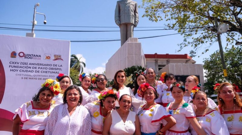 Chetumal.- En el marco de la conmemoración del 125 aniversario de la fundación de Payo Obispo, hoy ciudad de Chetumal, la gobernadora Mara Lezama Espinosa expresó que este primer gobierno de la transformación profunda trabaja todos los días para que la capital recobre el brillo y el esplendor, y que el bienestar y la prosperidad compartida se refleje en los bolsillos y mesas de los quintanarroenses.