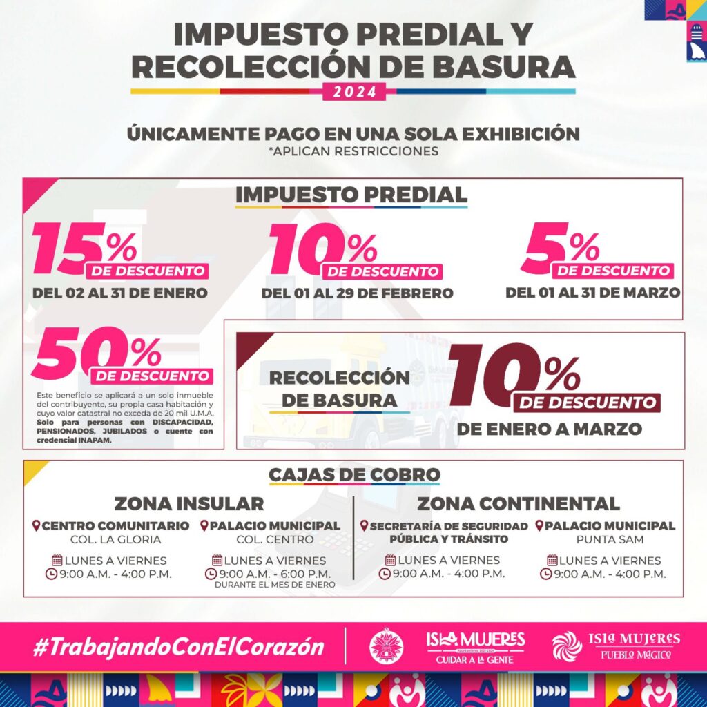 El Gobierno Municipal de Isla Mujeres anuncia atractivos descuentos en el pago oportuno del Predial
