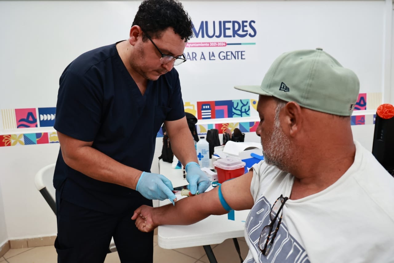 Isla Mujeres, Quintana Roo, 10 de noviembre de 2023.- Como parte de la campaña Noviembre Azul “Estar Sano esta de Moda” que puso en marcha el Gobierno Municipal que encabeza la alcaldesa, Atenea Gómez Ricalde, inició la toma de muestra de Antígeno Prostático para la detección de cáncer de próstata en el Centro de Desarrollo Comunitario de la zona continental.