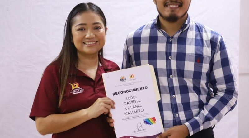 Al finalizar su exposición, la presidenta municipal, realizó la entrega de un reconocimiento al expositor David Villamil Navarro, quien a través del colectivo “Queertana Roo”, impartió este día la capacitación a las y los servidores públicos del Ayuntamiento de Othón P. Blanco.