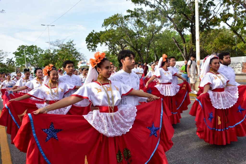 Con un contingente conformado por 9 bloques: Banda de Guerra, Cancún de Ayer y Hoy, Cancún Cultural, Cancún Turístico, Cancún Joven, Cancún Deportista, Cancún Inclusivo, Cancún nos une y Club de motos; la Primera Autoridad Municipal lideró la marcha, saliendo desde la Av. Chichén Itzá con Tulum, en dirección al Parque de Las Palapas.