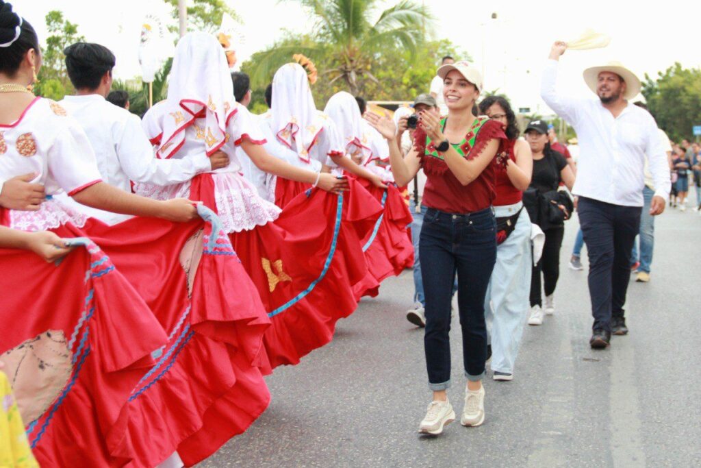Junto con la Primera Edil caminaron niñas y niños disfrazados de sus superhéroes favoritos, así como miles de deportistas de todas las edades, campeones en diferentes disciplinas, padres y madres de familias junto a sus hijos, así como adultos mayores con trajes típicos de la región, bailando y muchos cancunenses disfrutando y conviviendo en una misma identidad.