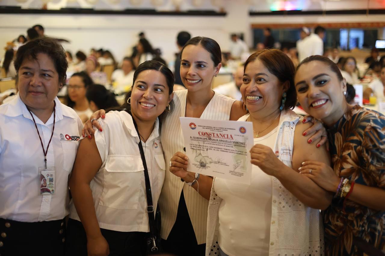 Cancún, Q. R., a 06 de mayo de 2025.- El Ayuntamiento de Benito Juárez, reafirma su compromiso con la reactivación económica, el empoderamiento del talento local y la generación de oportunidades para quienes forman parte del ecosistema emprendedor y artesanal, al entregar 79 credenciales y certificados en “Primeros Auxilios” y “Uso y Manejo de Extintores”, por parte de la Presidenta Municipal, Ana Paty Peralta, a artesanas, artesanos y emprendedores que satisfactoriamente cumplieron con los procesos de capacitación.